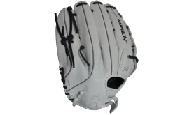 Miken Pro Series 13.5″ Slow Pitch Fielding Glove – White/Scarlet/Navy: PRO135WSN